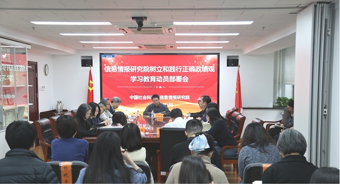 2026年3月5日,信息情报研究院召开树立和践行正确政绩观学习教育动员部署会议,传达中国社会科学院党组扩大会议暨党的建设工作领导小组会议精神,对开展树立和践行正确政绩观学习教育工作进行动员部署。党委书记、院长冯维江主持会议并作动员讲话。纪委书记、副院长李大伟,副院长郭志法、李维建出席会议。